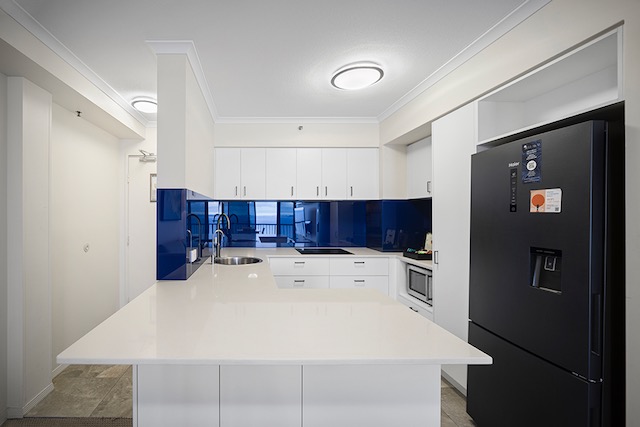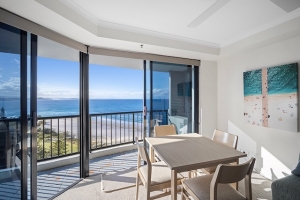 Step inside and be captivated by the spectacular 180-degree ocean views stretching across the entire southern Gold Coast — from Kirra to Snapper Rocks. The expansive north-facing balcony wraps effortlessly around both bedrooms and the open-plan living area, creating a seamless indoor–outdoor flow and the ideal space for entertaining, relaxing, or simply soaking in the endless sea breeze.